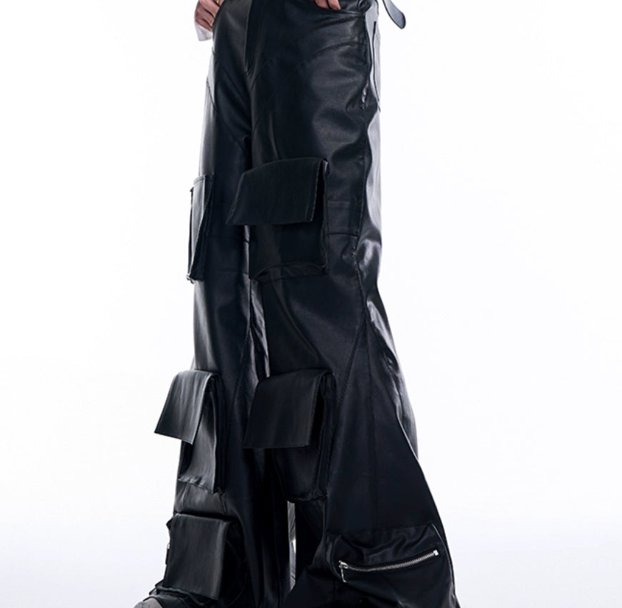 Autumn Three-dimensional Pocket Leather Pants Wide Leg