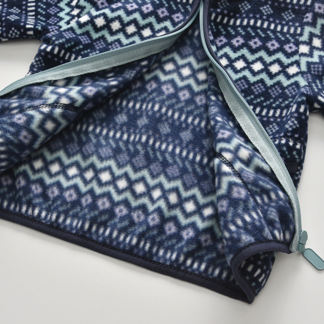 Baby Polar Fleece Jacket Navy Blue Striped Thin Long Sleeve Stand Collar Top