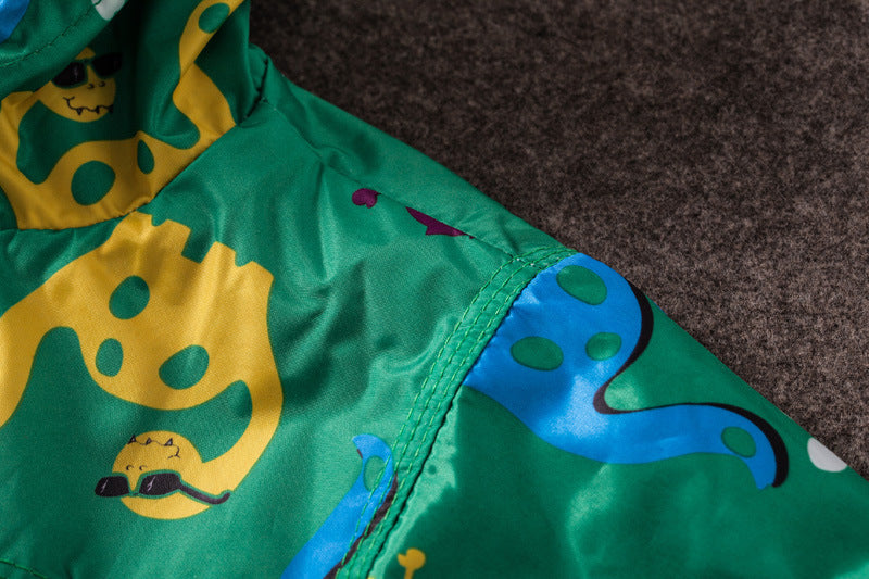 Boy's Cute Dinosaur Windproof And Rainproof Jacket Children's Hooded Jacket