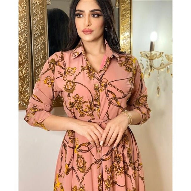 Dubai Long Dress Middle East Autumn Chain Print Swing Dress