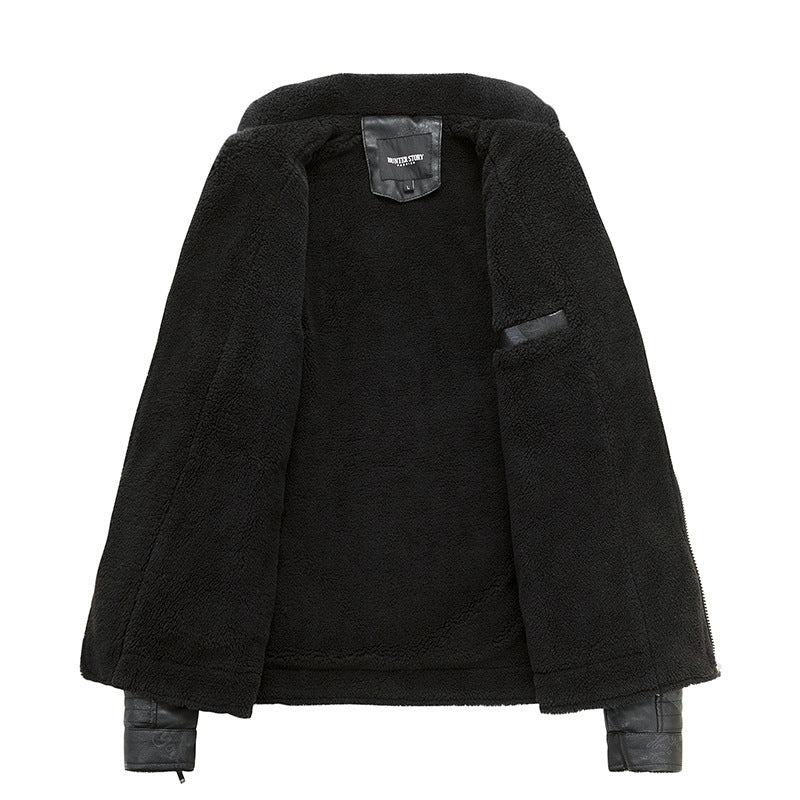 Fall Winter Lapel Men's Plus Velvet Motorcycle Leather Jacket