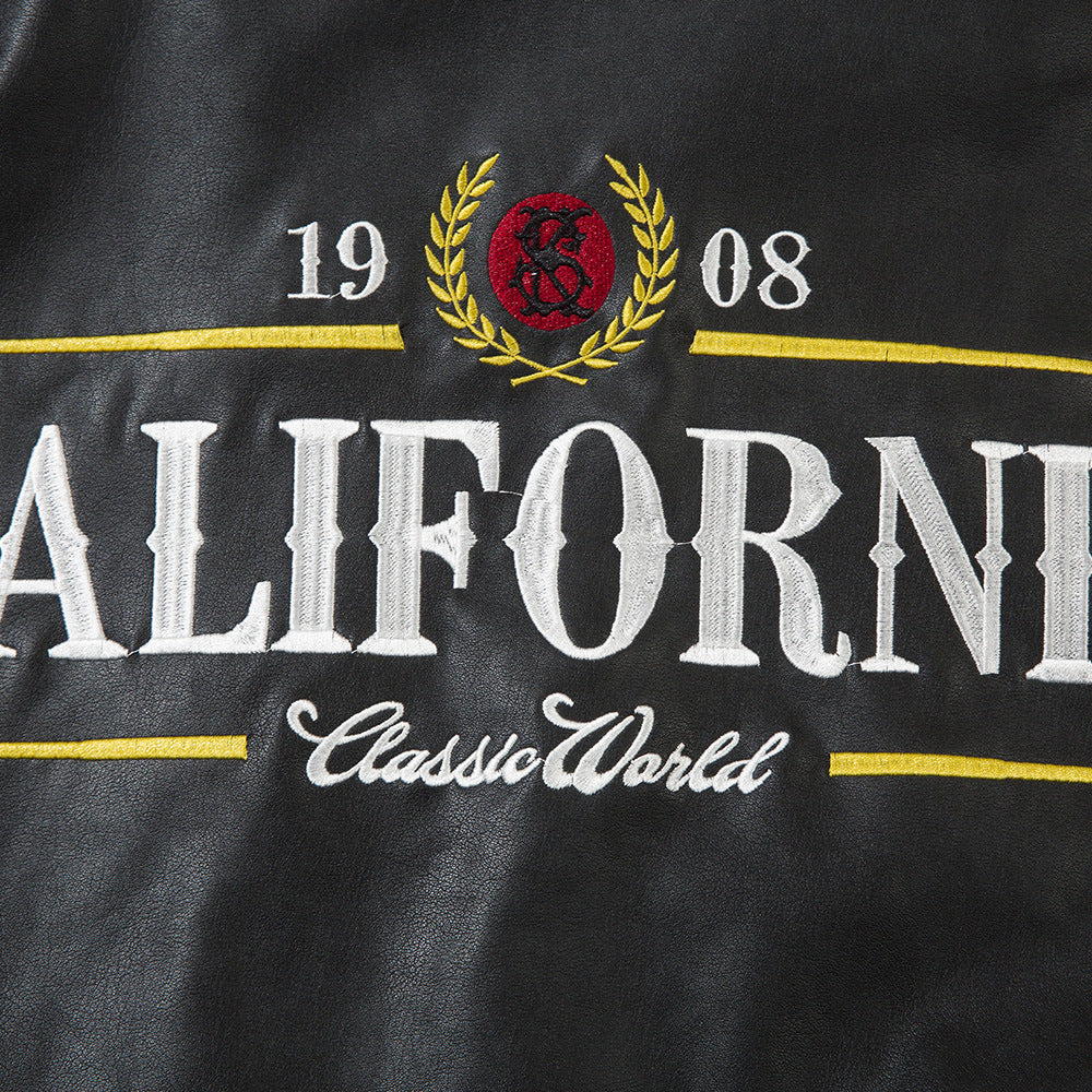 Men's American Embroidery Letters Motorcycle Clothing PU Leather Jacket Coat