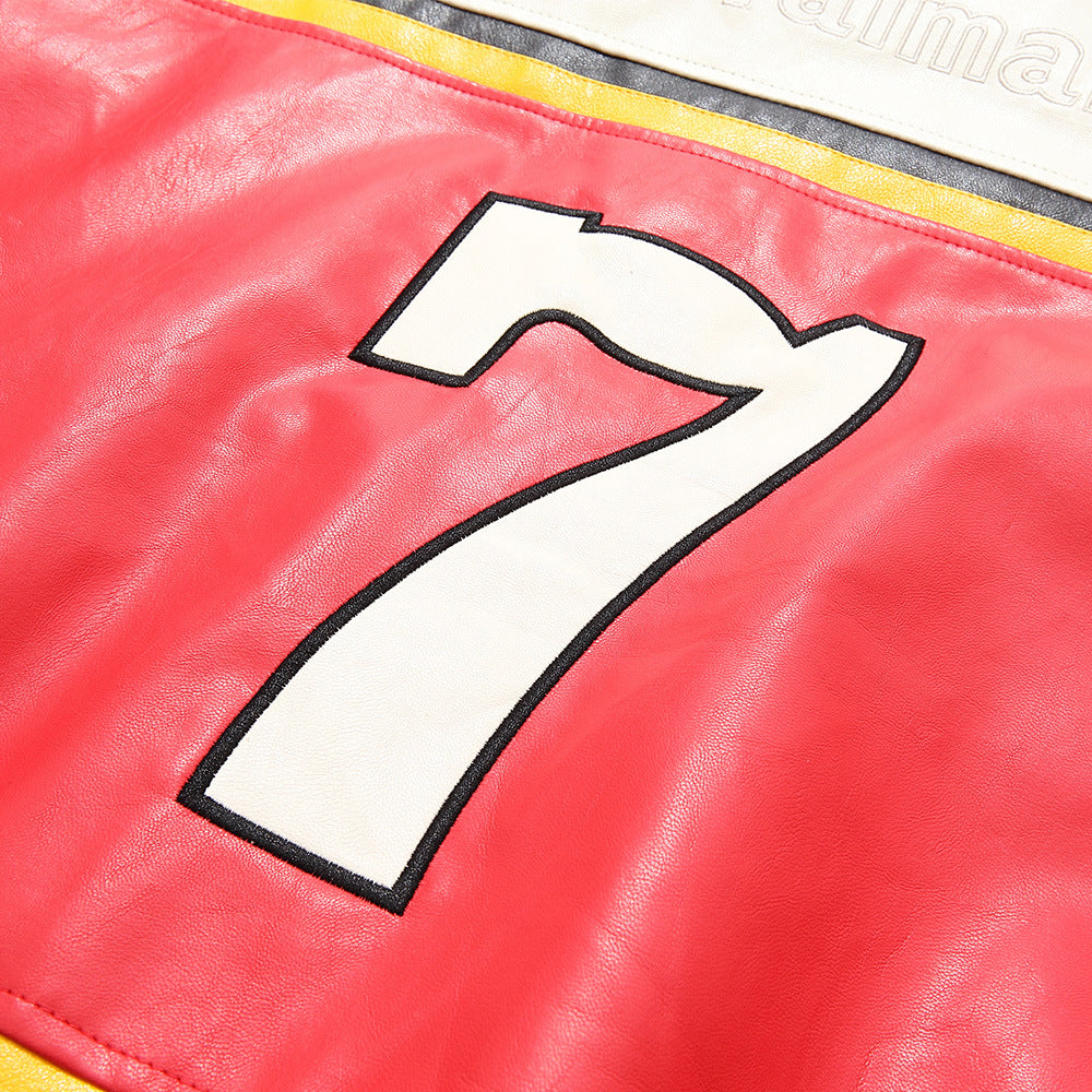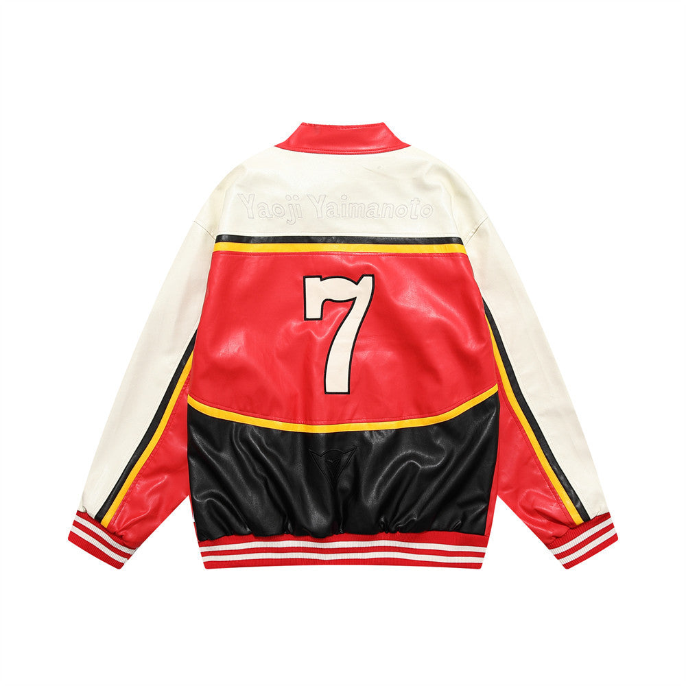 Men's Colorblock Stitching Zipper Stand Collar Leather Jacket