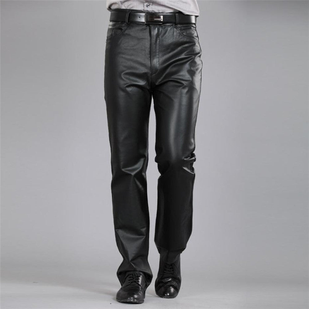 Men's Genuine Leather Straight Slim Fit Trousers Thickened And Warm