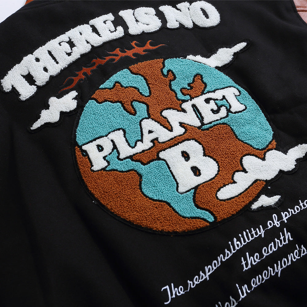 PU Leather Jacket Men's Letter Embroidery Baseball Color Matching Jacket