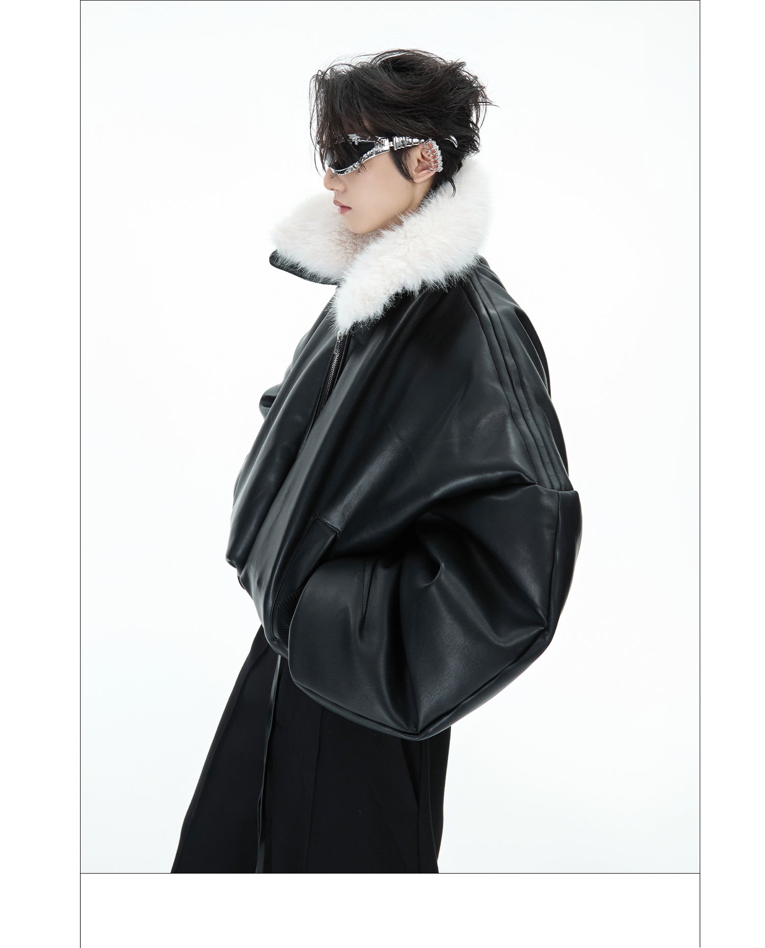 Recycled Niche Fur Collar Jacket Cotton-padded Jacket Leather Coat