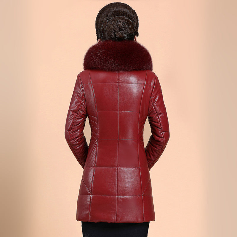 Women's Medium Long Fur Collar Thickened Large Leather Down Jacket