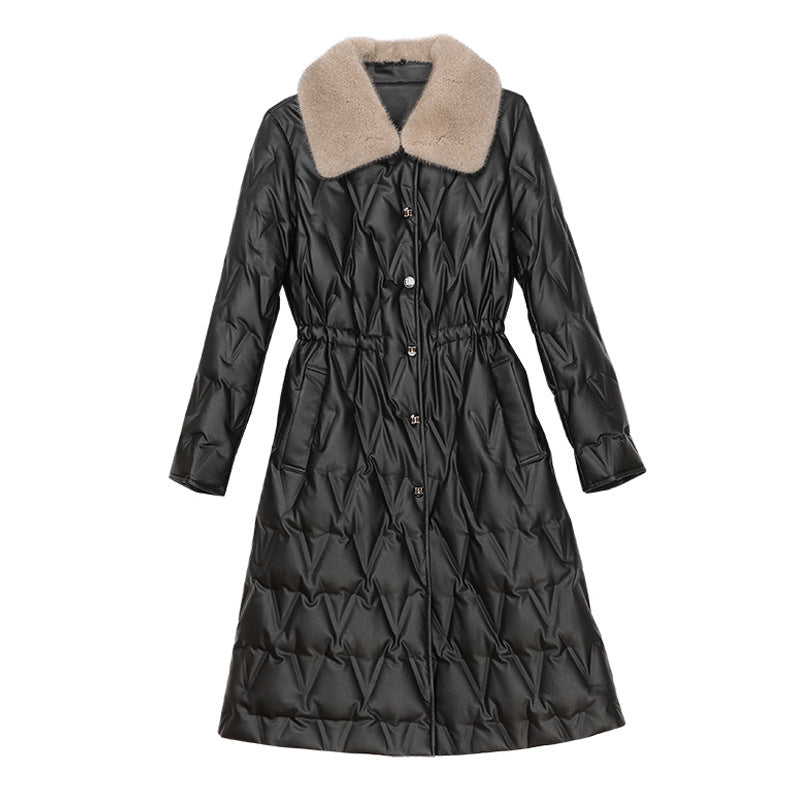 Wool Collar Fitted White Duck Down Warm Leather Coat